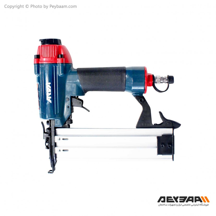 میخ کوب بادی اسکا F50 آروا مدل 3315 مجهز به کوپلینگ طرح ژاپن، میزان فشار کاری 60 تا 100 PSI، ظرفیت خشاب 100 عددی و همچنین سایز میخ قابل پشتیبانی 10 الی 50 میلی متر می باشد. از ویژگی های مهم این مخکوب بادی می توان به ضامن آزاد کننده دماغه در صورت گیر کردن میخ در دستگاه و همچنین قابلیت چرخش 360 درجه خروجی هوا را نام برد.