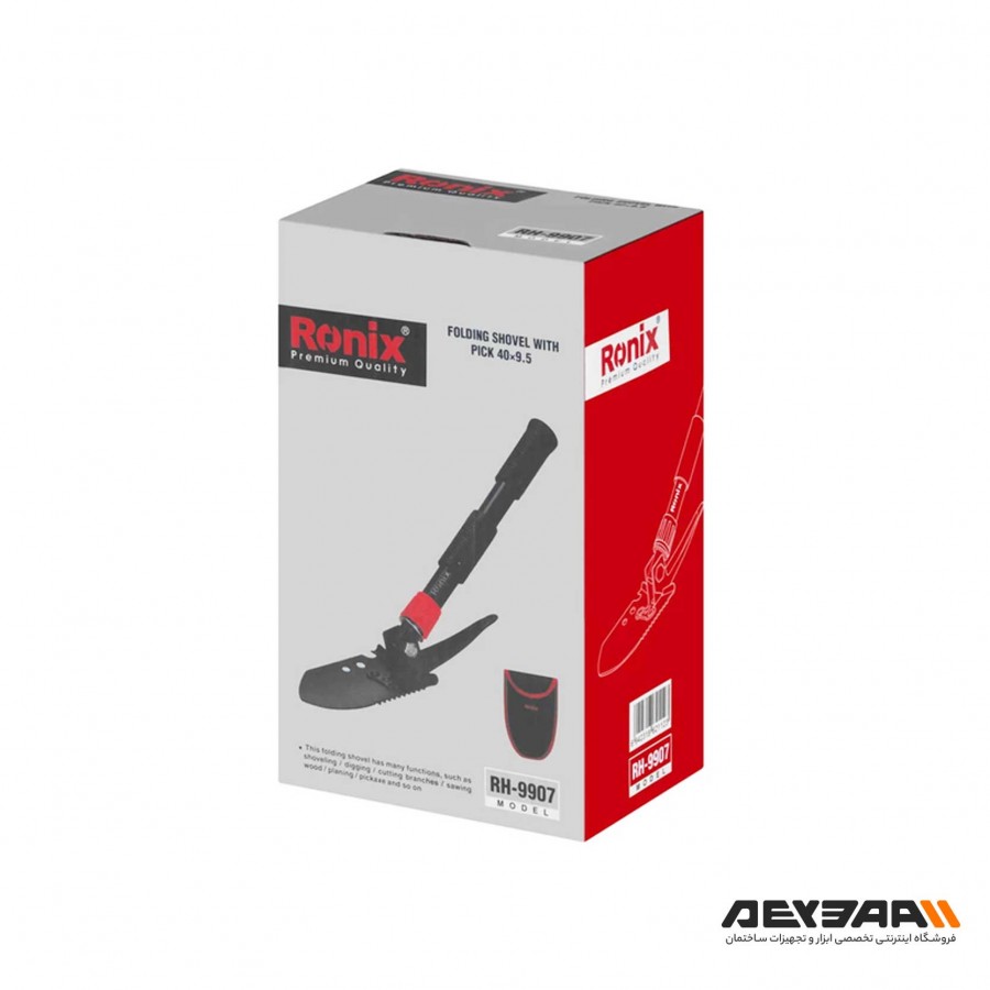 بیلچه چند کاره کمپینگ رونیکس مدل RH-9907، ابزاری کاربردی برای کمپینگ، آفرود، طبیعتگردی، ماهی گیری، باغبانی، شرایط اضطراری در خودرو و فعالیت های فضای باز است. سیستم قفل مکانیکی در این بیلچه موجب تغییر سریع و مطمئن حالت ابزار میشود. این بیلچه با قابلیت های متعددی همچون بیل زدن، بریدن شاخه ها، اره کردن چوب، خردکردن و حتی استفاده بهعنوان کلنگ برای شکستن سنگ و کندن زمین ابزاری کاربردی برای انواع فعالیت ها است.
